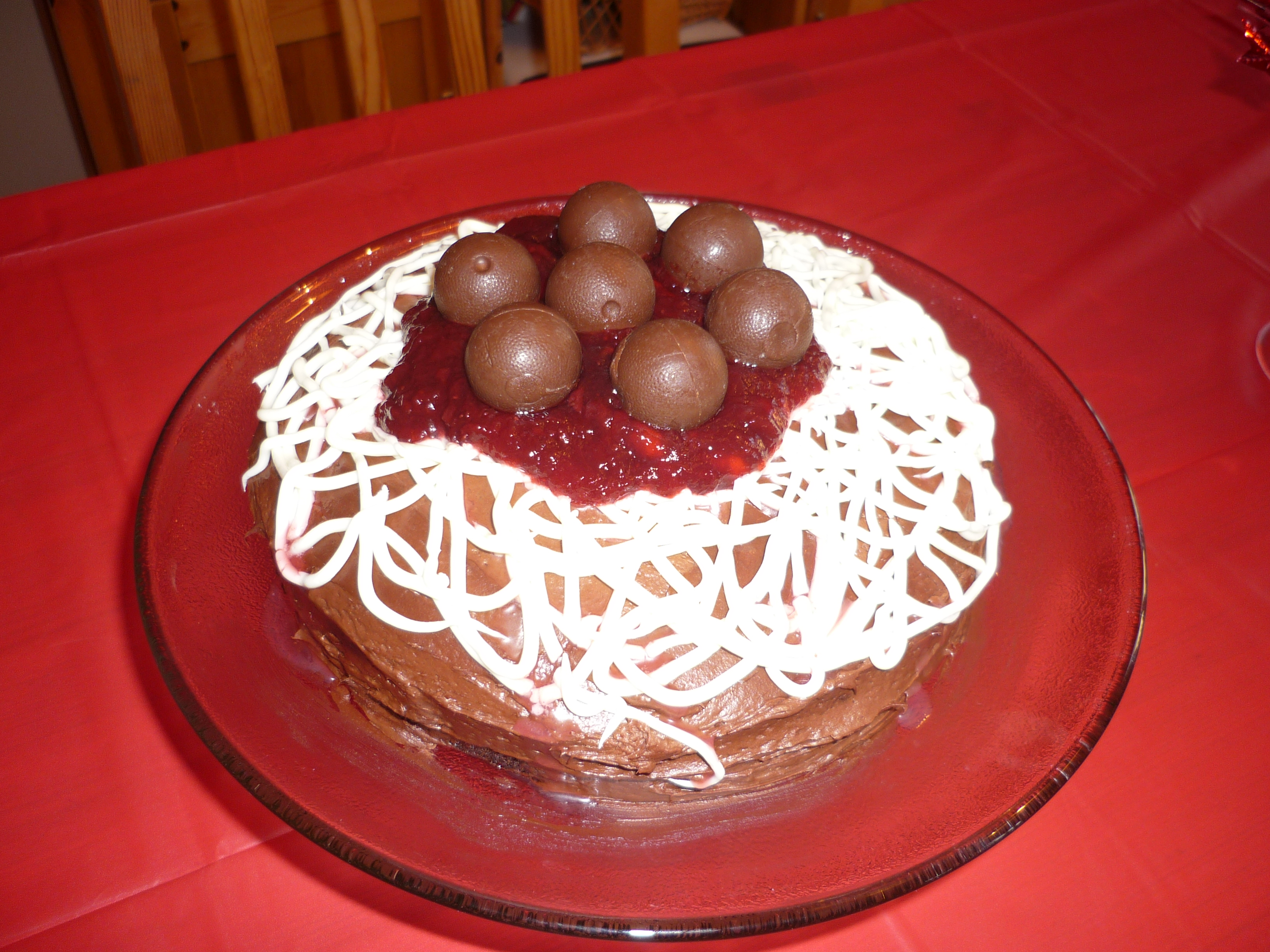 Vanilla Frosting – use round piping tip and scribble on top to look like spaghetti