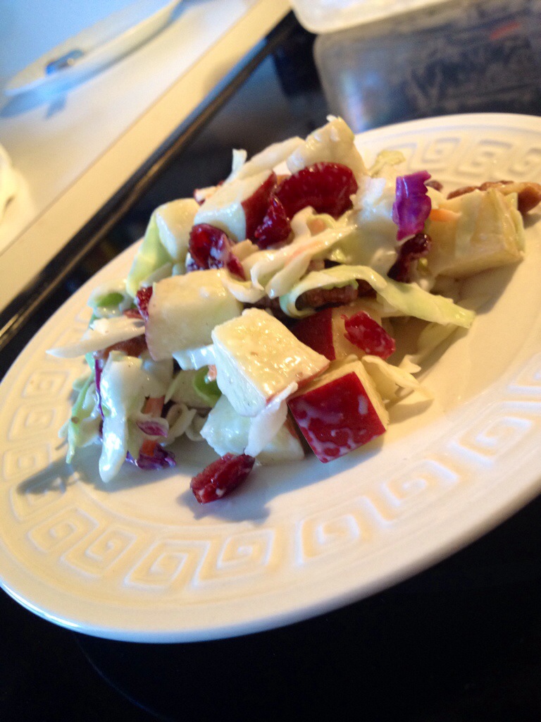 Prepare the salad. In a large bowl, combine the cabbage, apples,  cranberries, and pecans. Pour in the reserved dressing and toss until well blended. Refrigerate at least 1 hour before serving, mixing the salad at least once to evenly distribute the dressing.