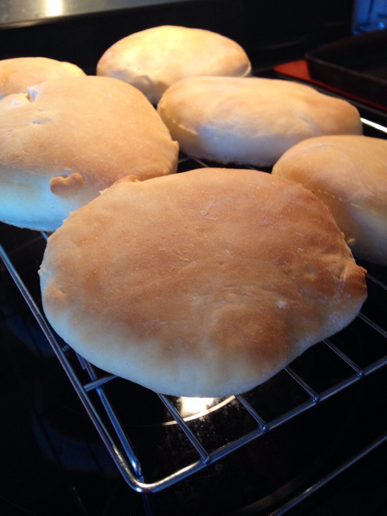 Remove the dough from the bowl and on a floured surface roll the dough out as pastry to 1 inch depth and cut into squares/triangles or take small amounts and make into balls. Place onto ungreased (or very, very little greased) baking trays and again cover with clean tea towels, place in a warm area and leave to rise for 30 to 40 minutes, the bread should again double in size.
